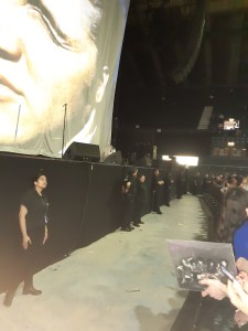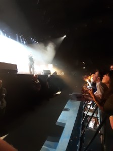 It seems, however, that I am possibly becoming over confident, the dream doesn’t last long, and I am shortly escorted unceremoniously back behind closed doors. You know I couldn’t last. However, I am still inside the venue, so all is not yet lost, and I spend an extremely stressful half hour employing all my powers of assertiveness and determination in order to gain re-entry just in time to secure a barrier spot on Boz’s side.
