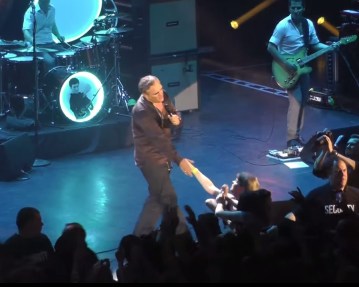 When we reach the penultimate song, Everyday is Like Sunday, it seems the passion from the crowd can no longer be contained, and dozens of people evidently feel compelled to make tangible the connection they feel with this man by shaking his hand, making physical contact, reaching the front of stage in order do this by whatever means necessary. I am one of those people.