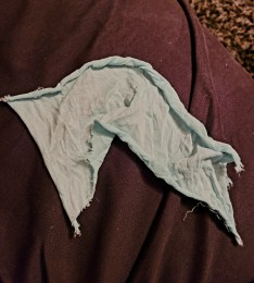 Morrissey tosses his shirt into the crowd and disappears once again, until next time, just two days hence. The shirt lands near the centre barrier area and we wait patiently for the lights to come up and the usual scuffle to subside. As the crowd eventually thins, my husband appears, and proudly presents me with a sizeable piece of pale blue fabric! I am astonished, knowing that since he always arrives well after doors have opened, he would not have been near enough to the front to have been in the midst of the shirt fight. He informs me that a man had emerged from the scrum, cutting a large piece of shirt up into smaller pieces with a penknife, and he was simply able to avail himself of one of these pieces.